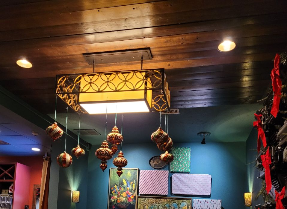 As we entered the new restaurant, my gaze rose to the wooden ceiling, a boxed rutilant light dazzled with gold and red oriental decorations.